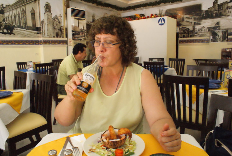 Leckeres Corona und Camarones al Coco