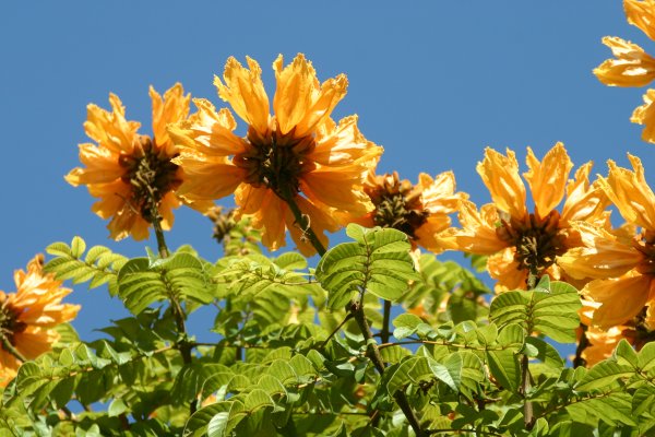 Diese Blüten habe ich mitten in der Hauptstadt fotografiert. Es sind aber keineswegs kleine Blümchen, sondern gehören zu einem großen Baum. Schade, dass ich nicht weiß, wie der heißt.