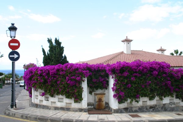 Bougainvillas sind zum Schmücken von Mauern sehr beliebt.