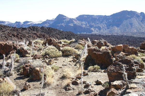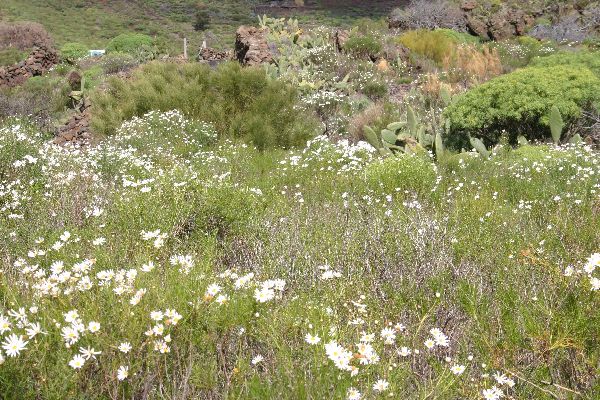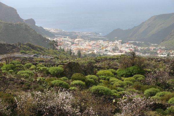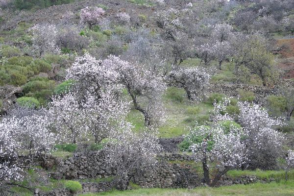 Wir sind wieder vom Teide runter bei Santiago del Teide. Blühende Obstbäume. Gegensätzlicher kann die Landschaft, die man hier innerhalb eines Tages sieht, nicht sein.