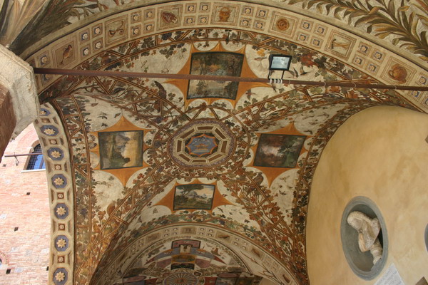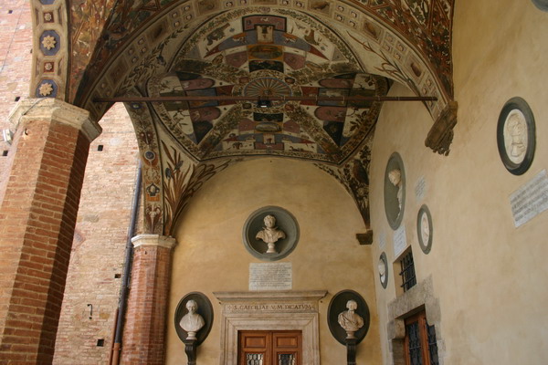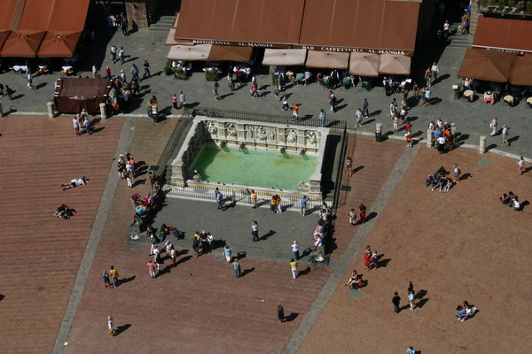 In Blickrichtung die Fonte Gaia (fröhliche Quelle), an der sich früher die Einwohner ihr Wasser holten. Zweimal im Jahr ist der Campo Schauplatz für den historischen Palio