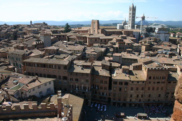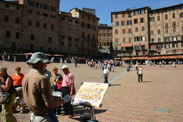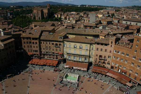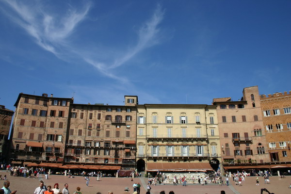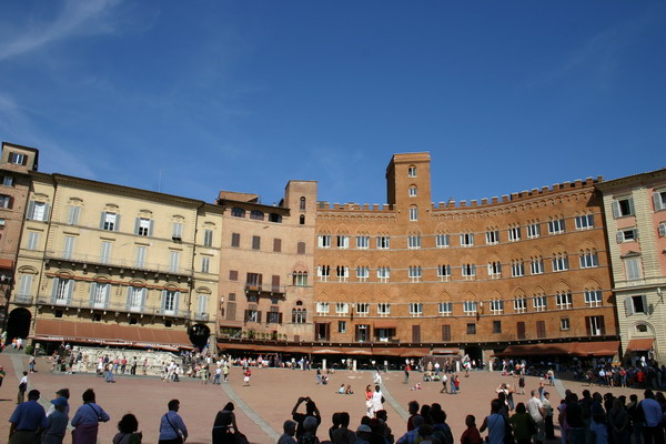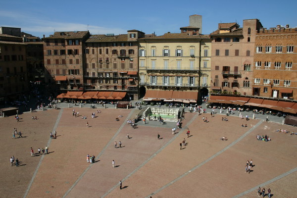 Vielen gilt er als der schönste Platz Italiens, wenn nicht der ganzen Welt. Muschelförmig und weitläufig liegt er an der Stelle, wo die drei Stadthügel zusammentreffen, überragt vom riesenhafen Palazzo Pubblico.