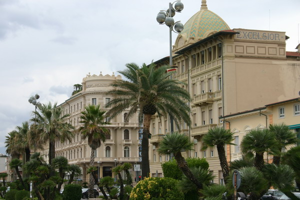 an der dem Meer zugeneigten Seite der Promenade gibt es nur zweistöckige Häuser. Das hat was von einer Hollywoodkulisse.